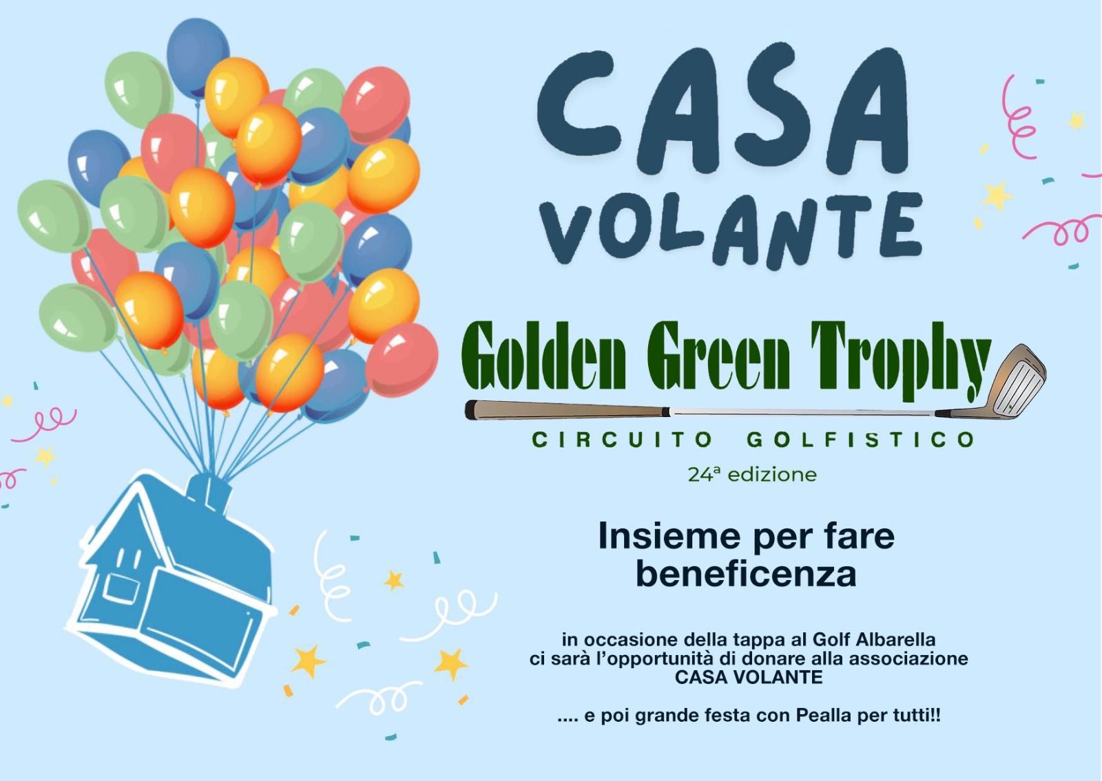 Siamo felici di annunciare che nella prossima tappa del Golden Green Trophy al Golf Albarella, i nostri giocatori avranno l’opportunità di fare la differenza. La quota di gara sarà maggiorata di 3 euro che andranno a favore di LA CASA VOLANTE, un’associazione di genitori con figli con disabilità.